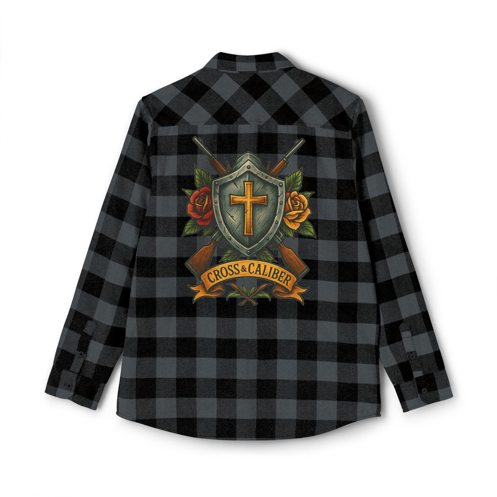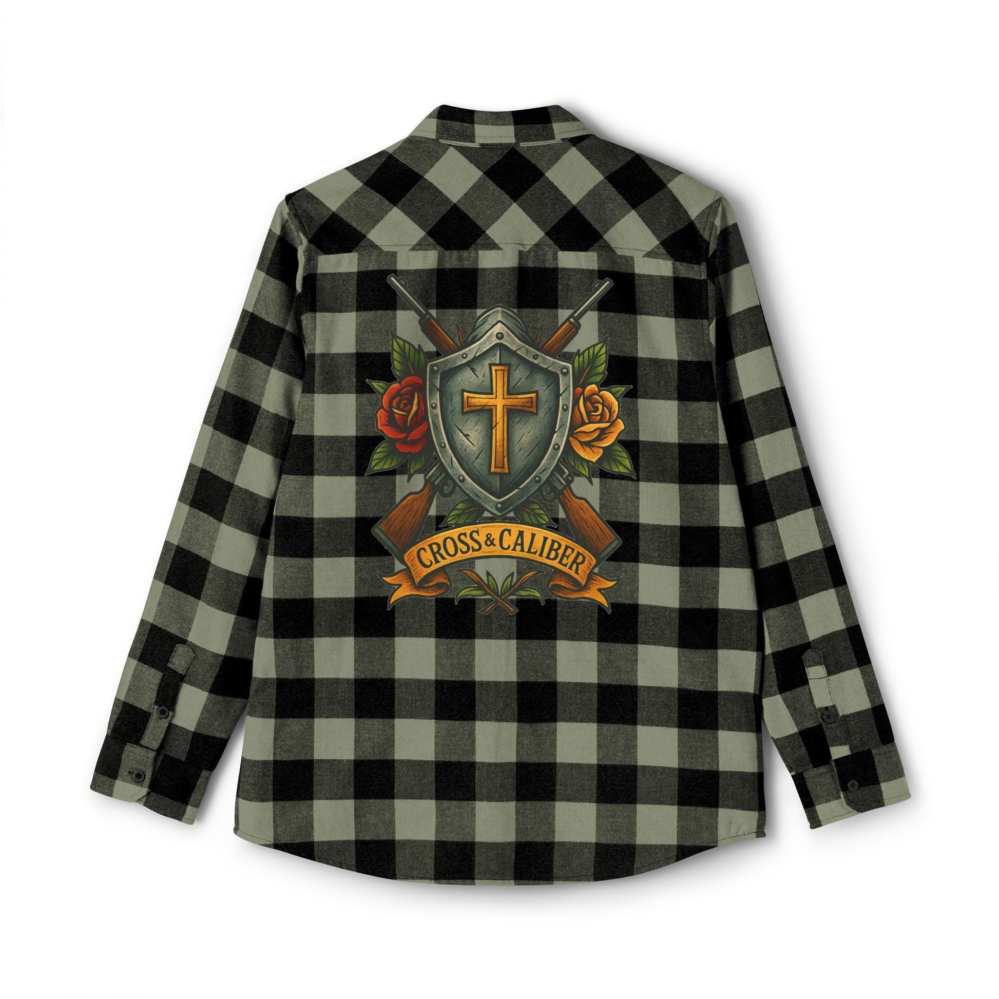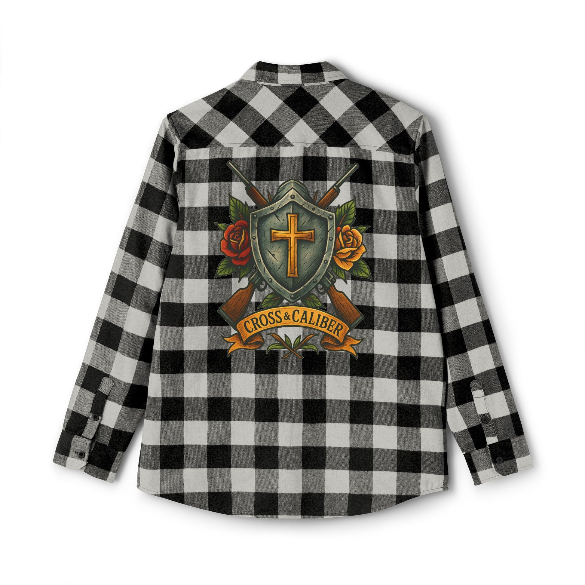 Unisex Flannel Shirt with Cross & Caliber Design - Casual Comfort for Adventurers